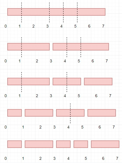 cuts := 一個列表,其中cuts中的元素按排序順序排列,並在開頭插入0並在結尾插入n