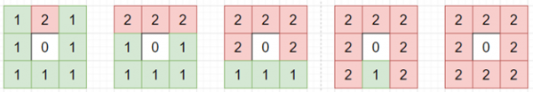 matrix = [ [1, 2, 1], [1, 0, 1], [1, 1, 1] ]