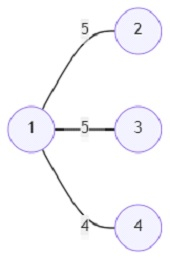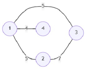 4, [(1, 2, 5), (1, 3, 5), (2, 3, 7), (1, 4, 4)], 3