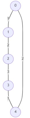 Input: 5, [(0,1,1),(1,2,2),(2,3,3),(3,4,1),(4,0,2)]