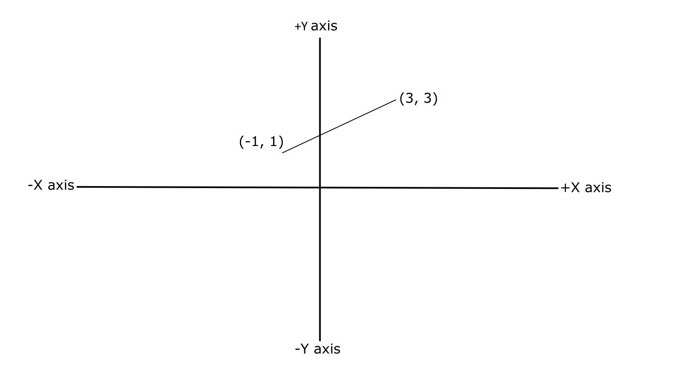 x1 = -1, y1 = 1 x2 = 3, y2 = 3 The slope of line = 1/2 = 0.5