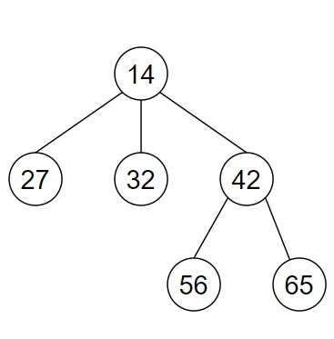 node6 = Node(65) node5 = Node(56) node4 = Node(42, [node5, node6]) node3 = Node(32) node2 = Node(27) node1 = Node(14, [node2, node3, node4]) tree = [node2, node1, node5, node3, node6, node4]