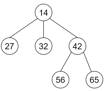 node6 = Node(65) node5 = Node(56) node4 = Node(42, [node5, node6]) node3 = Node(32) node2 = Node(27) node1 = Node(14, [node2, node3, node4]) root = node1