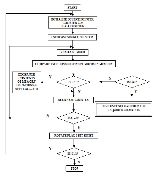 在這裡,我們將看到一個8085程式,用於將一組數字按升序排列。