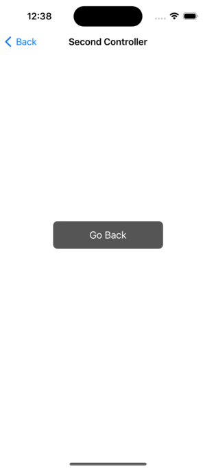 在上面的程式碼中,handleBackButtonTapped() 函式尚未完成。我們將在該方法內部編寫程式碼以返回到第一個控制器,如下所示: