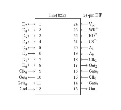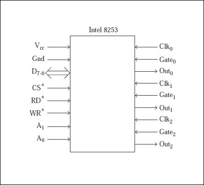 從微處理器的角度來看,8253 被設計成一個具有特殊埠晶片 I/O 的晶片。我們不使用它來干預 I/O 裝置。它被用於執行時間相關的應用。8253 具有地址輸入引腳 A1 和 A0。
