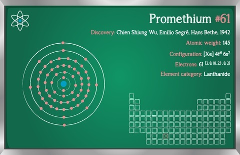 因此,根據元素週期表,其原子序數為61。其同位素具有放射性,只有一 種以穩定形式存在。它在性質上也與鎝相似。