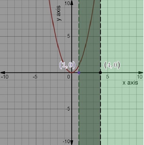 假設我們想找到由連續曲線 y=x2、x 軸、縱座標 x=1 和縱座標 x=4 圍成的面積。