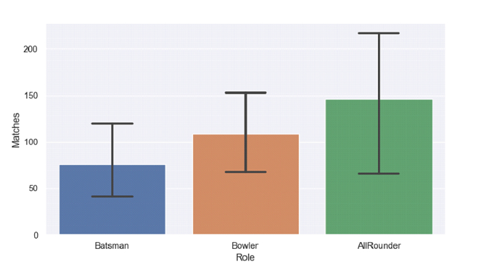 sb.barplot(x=dataFrame["Role"], y=dataFrame["Matches"], capsize=.3)