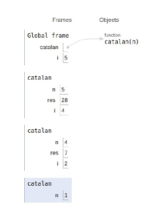 Catalan 數既可以透過遞迴獲得,也可以透過動態規劃獲得。下面讓我們看看它們的實現方式。