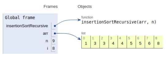 問題陳述− 給定一個數組,我們需要使用遞迴插入排序的概念對其進行排序。
