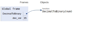 def DecimalToBinary(num): if num > 1: DecimalToBinary(num // 2) print(num % 2, end = '') # main if __name__ == '__main__': dec_val = 35 DecimalToBinary(dec_val)