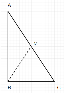 假設我們有一個直角三角形的兩條邊AB和BC。假設斜邊AC的中點為M。我們需要求M與BC之間的夾角。