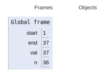 start = 1 end = 37 for val in range(start, end + 1): # If num is divisible by any number # between 2 and val, it is not prime if val > 1: for n in range(2, val): if (val % n) == 0: break else: print(val)