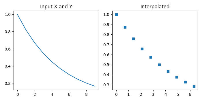 其中 x 是實值的一維陣列,y 是實值的 N 維陣列。y 沿插值軸的長度必須等於 x 的長度。