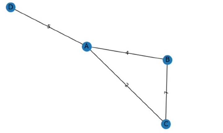 在新增節點後,我們將建立邊來連線這些節點。為了在節點之間新增邊,我們使用 add_edge() 函式。例如,節點 1 和 2 透過一個權重為 4 的邊連線。