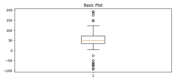 現在使用 boxplot() 方法和資料,製作一個箱線圖。在觸鬚之外,資料被視為異常值,並被繪製為單獨的點。