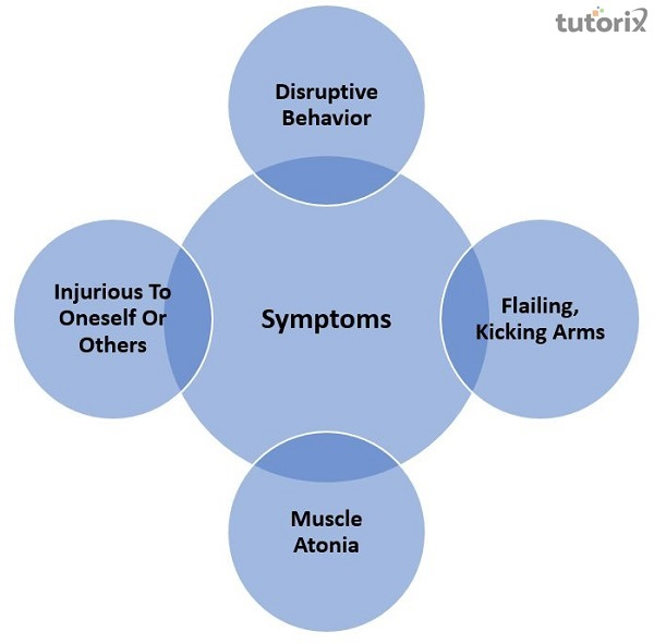 REM睡眠行為障礙最常見的症狀是失眠。大多數患者會從床上摔下來,打自己或他人。它也可能與夢遊和其他典型行為一起發生,如揮舞手臂、聲音變化或打拳。一些患者還報告在發作期間受傷。會出現異常的整體運動行為,嚴重情況下可能出現癲癇發作。醒來時可能會感到困惑,REM睡眠期間肌肉張力下降。根據ICSD 3,要診斷為REM睡眠行為障礙,應出現以下症狀: