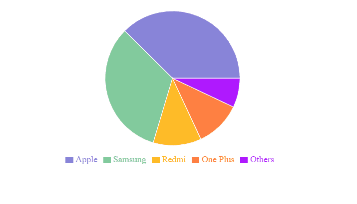 上述程式將生成一個包含給定資料的餅圖。當您將滑鼠懸停在餅圖上時,它將顯示資料。您會發現類似於以下的結果