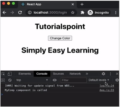<h1 style={{ color: this.state.color }}>Tutorialspoint</h1>