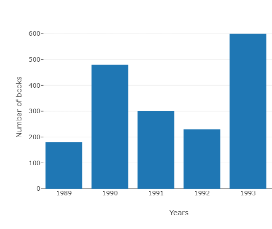 閱讀柱狀圖(圖 3.4),該圖顯示了一家書店連續五年售出的書籍數量,並回答以下問題