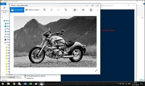 影像儲存在我的預設位置,即當前工作目錄,並且視窗截圖將顯示我們的影像。