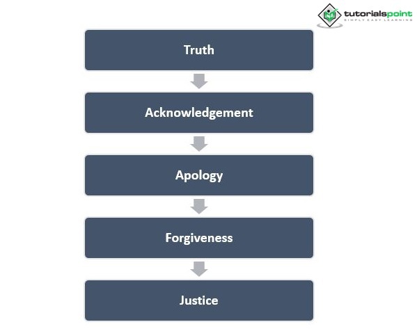 承認 - 肇事方必須真誠地向受害者承認他們對所造成傷害的責任或他們在痛苦複雜根源中的作用。除了對傷害的可驗證資料之外,承認還必須解決傷害的情感意義。強調這種承認對受害者來說有多麼重要是很難的。這是因為他們的悲傷得到了認可。有人承認了它。