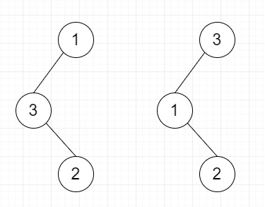 假設我們有一個二叉搜尋樹,現在考慮一下這個 BST 的兩個元素被交換了,所以我們必須恢復這棵二叉搜尋樹。
