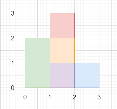 假設我們有一系列(軸對齊的)矩形。這裡每個矩形[i] = {x1, y1, x2, y2},其中 (x1, y1) 是左下角的點,(x2, y2) 是第 i 個矩形的右上角的點。