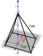 2)假設一塊木頭被雕刻成一個矩形稜錐,其高度、寬度和長度均為 7 釐米。求這塊木頭的側表面積。