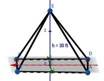 3)一群 26 個朋友在篝火旁露營。他們在篝火旁搭建了一個大型帳篷,形狀為矩形稜錐,底面積為 300 𝒇𝒕𝟐,垂直高度為 30 英尺。求帳篷的體積。