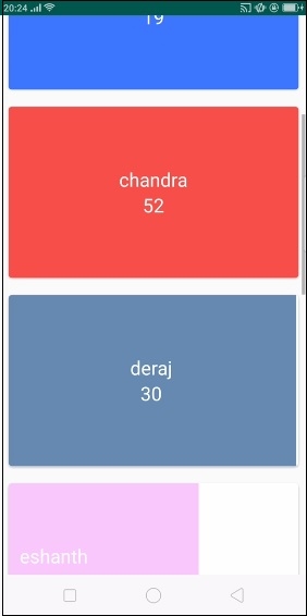 現在向下滾動到RecyclerView,它將顯示如下結果: