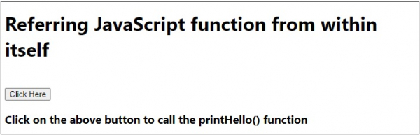 以下是引用自身內部的 JavaScript 函式的程式碼 −