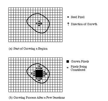 區域生長 - 此方法透過包含具有相似特徵的相鄰畫素來遞迴地增長分割。它使用灰度區域的灰度級差異和紋理影像的紋理差異。