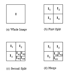 區域分裂 - 在此方法中,整個影像被視為單個區域。現在,要將區域劃分為多個部分,它會檢查初始區域中包含的畫素是否遵循預定義的標準。如果它們遵循相似的規則,則將它們放入一個部分。