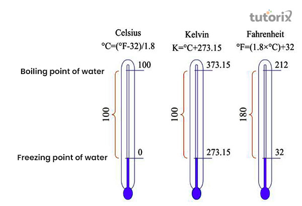 根據攝氏溫標,水在 0°C 時結冰。根據攝氏溫標,水的沸騰溫度為 100°C。由於這兩個溫度之間的差異為 100 度,因此該溫標的另一個名稱是“百分溫標”。