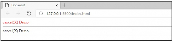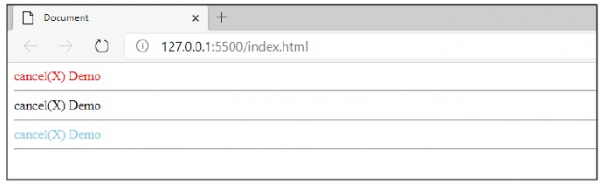 每當您單擊取消(X)時,jQuery 將刪除元素。這將產生以下輸出 −