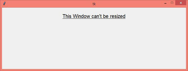Label(win, text= "This Window can't be resized", font= ('Helvetica 15