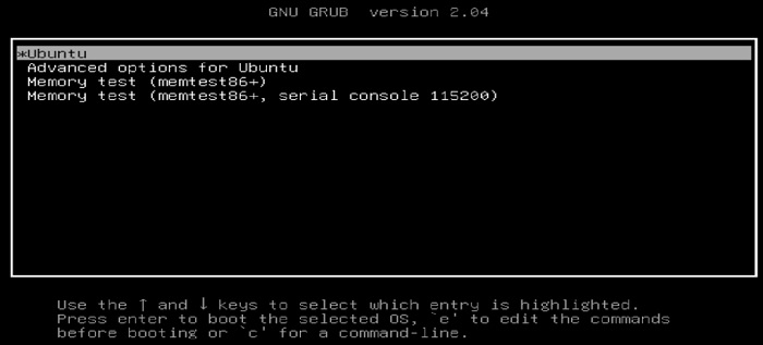 重啟計算機並在 grub 螢幕上中斷啟動過程,方法是**按住 Shift 鍵**。注意,發生這種情況時您需要快速操作,您在實際操作時會看到這一點。