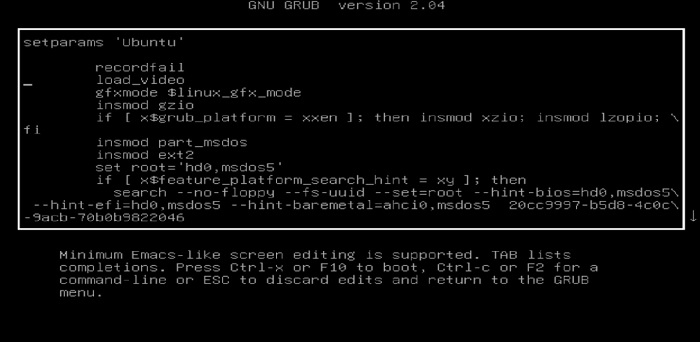 突出顯示正常的啟動條目或作業系統名稱條目,然後按 e 開啟 grub 引數。