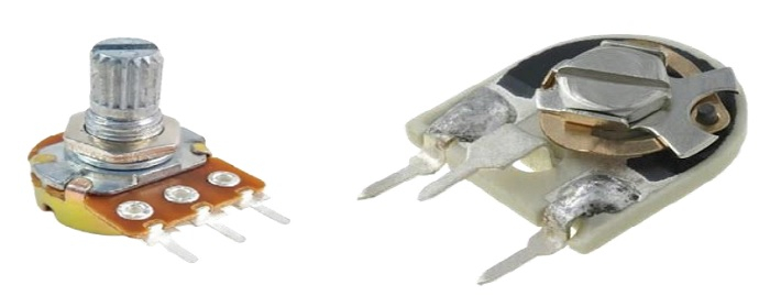 電位器和預置電阻是最常用的可變電阻器。這些電阻器在兩個端子之間具有一個固定值的電阻,並帶有一個旋轉旋鈕,該旋鈕在旋轉時會改變電阻值。電阻的變化是由一個連線到裝置內部電阻材料上的觸點提供的。