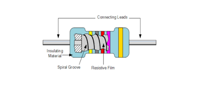金屬膜電阻器由金屬氧化物或塗有陶瓷的金屬棒製成。這些電阻器的阻值由塗層層的厚度控制。與碳電阻器相比,這些電阻器更可靠、更穩定、更精確。金屬膜電阻器的阻值範圍很廣,從幾歐姆到幾兆歐姆。
