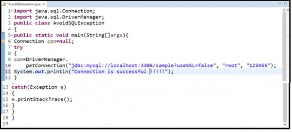 getConnection("jdbc:mysql://:3306/sample?useSSL=false", "root", "123456");