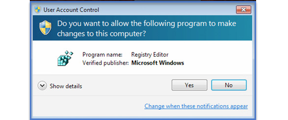 單擊“執行”後,將開啟“使用者帳戶控制”對話方塊,單擊“是”和“確定”以批准合併.reg檔案。