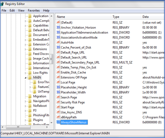 在右側窗格中,生成一個新的 DWORD“AlwaysShowMenus”並將它的值設定為 0。