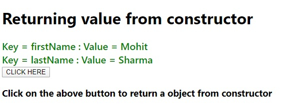 以下是返回 JavaScript 中建構函式的值的程式碼 −