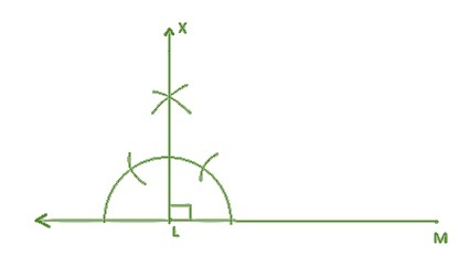 步驟2 - 使用圓規,以L為圓心畫弧,與線的兩側相交。