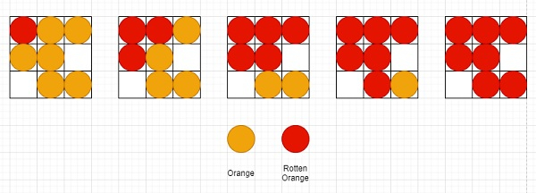 每一分鐘,任何與腐爛的橙子相鄰的新鮮橙子都會變成腐爛的。