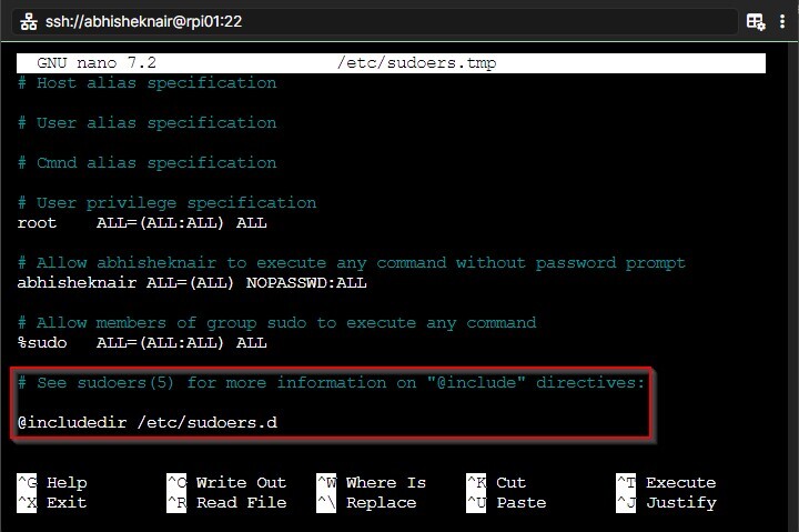 正如我們所看到的,我們在/etc/sudoers檔案中找到了@includedir指令。
