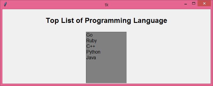 listbox= Listbox(win, height=10, width= 15, bg= 'grey', activestyle= 'dotbox',font='aerial')